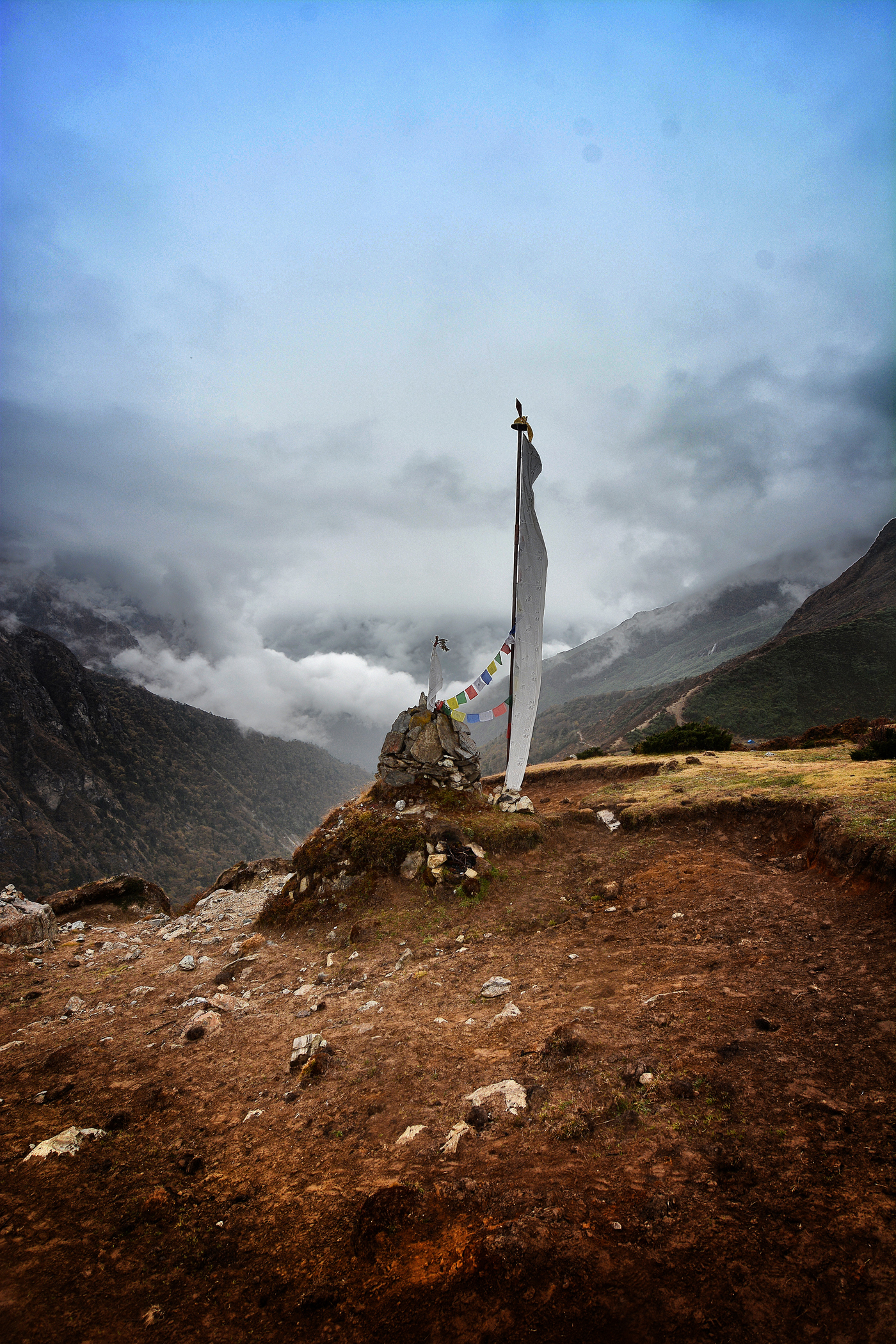 Auf unserem ziemlich toughen Hike nach Gokyo (4790 M.ü.M) wurden wir aber auf der vorletzten Etappe gestoppt. Wegen unerwartet starken Schneefällen und niederdonnernden Lawinen wurde der Trail nach Gokyo gesperrt. Zwei Tage lang sassen wir in Machermo (4500 M.ü.M.) fest. Beim Besuch des dortigen “Rescue Centers” (eine Initiative einer britischen NGO) haben wir einen Sherpa angetroffen, der Stunden zuvor von einer Lawine erfasst und von Notärzten vor Ort gerettet wurde. Dieselbe Lawine hatte mehrere Träger-Yaks in den Tod gerissen. Die Begegnung mit dem Sherpa, meine undichte Mammut-Jacke und die in meinem Kopf nachhallenden, zur Vorsicht mahnenden Worte meines Vaters haben mich dann endgültig zur Einsicht gebracht, dass Gokyo diesmal unerreicht bleiben muss…