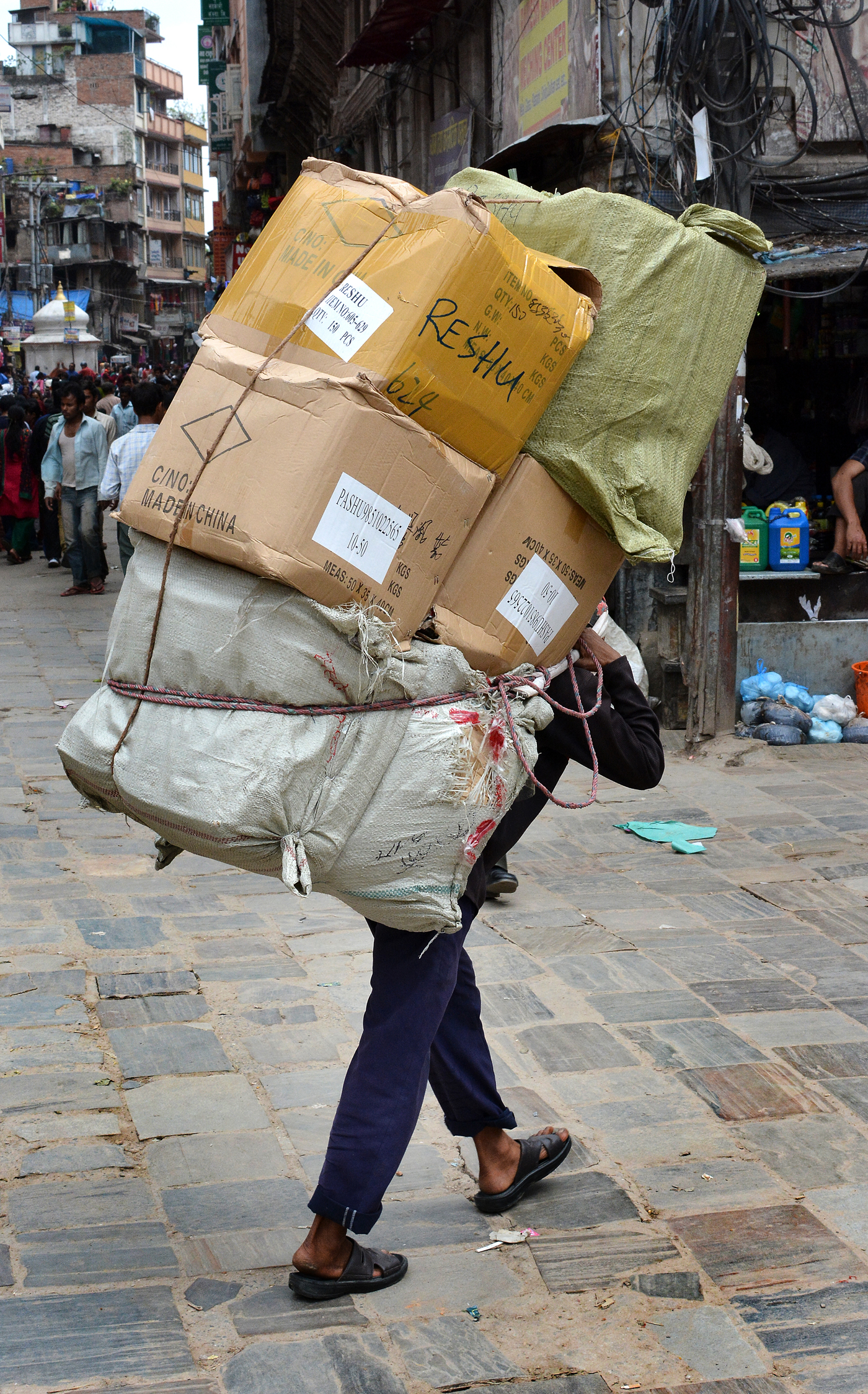 Die ländliche Armut begegnet einem im Gokyo-Valley in Form der als Schlepper und Träger arbeitenden Sherpas, die täglich mit unglaublichen Ladungen die schmalen Wanderwege rauf und runter huschen. In meist völlig unzureichender Kleidung (viele tragen Flipflops oder Gummistiefel, fast niemand hatte eine wasserdichte Jacke an) schleppen die Sherpas (Teenager bis Greise, Männer und Frauen) das Reisegepäck der Touristengruppen ans nächste Tagesziel, bringen Nahrungsmittel in die kleinen Bergrestaurants oder transportieren ganze Bauelemente den Berg hoch. 30 Kilos sollte ein Sherpa maximal tragen müssen, steht in einer Abmachung, die wir im Rescue Center in Machermo durchgelesen haben. Dafür sollte er/sie täglich mit rund 1000 Rupien entlohnt werden. Doch, das ist Wunschdenken, wie uns der englische Arzt in Machermo erzählt hat. Die Arbeitsrealität der oft draussen unter Felsvorsprüngen schlafenden Sherpas ist zumeist wesentlich härter.