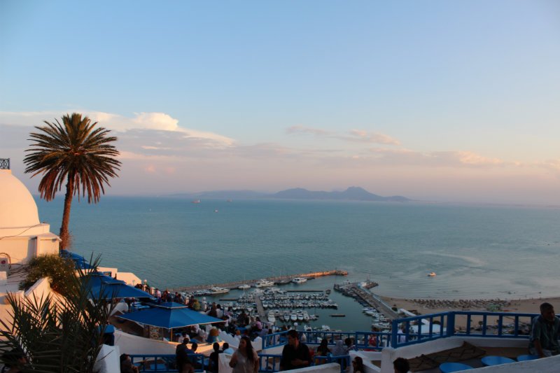 Photos de voyage Mon stage en Tunisie m’a permis de découvrir un pays magnifique, vivant, divers, pauvre aussi, des rues populaires de Tunis aux plages touristiques de Hammamet. Galerie photos. Sidi Bou Saïd Bild 14 von 35 La vue depuis le Café des Délices.