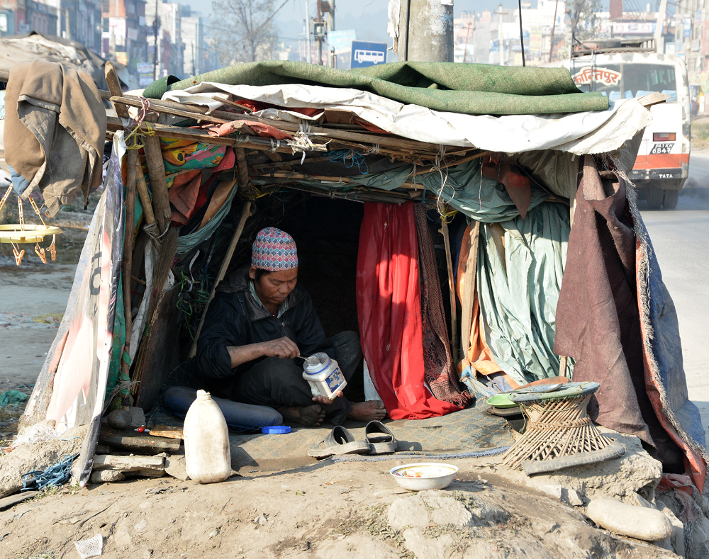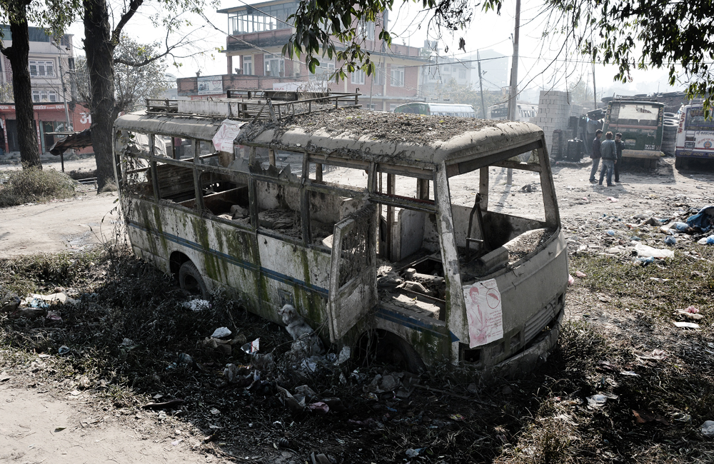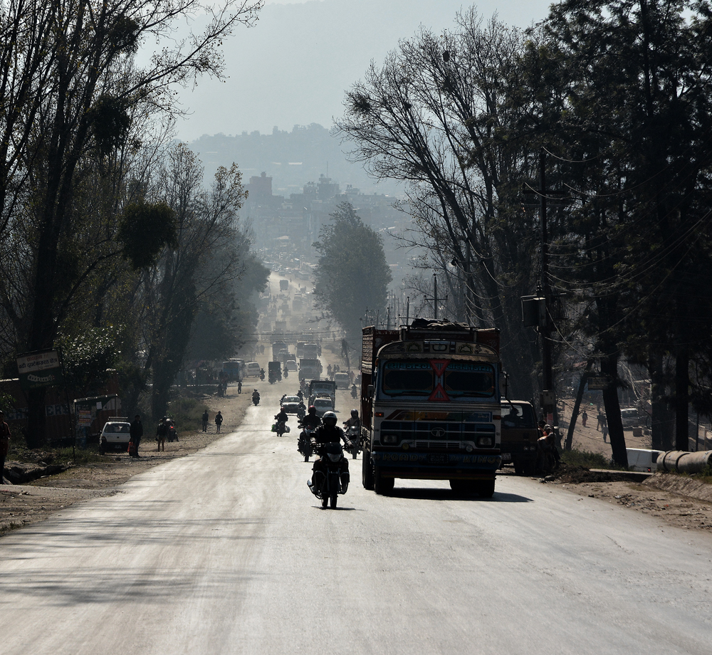 Ich habe aufgehört zu schlucken. Längst spucke ich alle paar Meter, was der kratzende Rachen noch hergibt. Jeder Tropfen Wasser brennt bis tief hinunter. Knirschen zwischen den Zähnen, fauliger Abgasgeruch in der Nase, und noch immer brennt es tief in mir. Ich will nicht mehr trinken, will mich versiegeln, den sinnlichen Horror aus meinem Körper verbannen. “LET ME IN!”, brüllt und keucht und bellt es von allen Seiten. Ich starre auf den löchrigen Boden, schnelle Schritte. Und dann trifft mich die Wucht der Strasse. Ein Seitenspiegel, meine rechte Schulter. Ich falle, liege, warte. Die Kamera. Sie ist ganz. Kein Schmerz. Weiter. Weiter. Weiter links vielleicht. Im ausgetrockneten Abwassergraben nach Sitapaila, das Etappenziel. Tote Ratten, Plastik, tote Ratten, Plastik, und ein rostiger Motor. Ich hasse sie, diese Strasse.